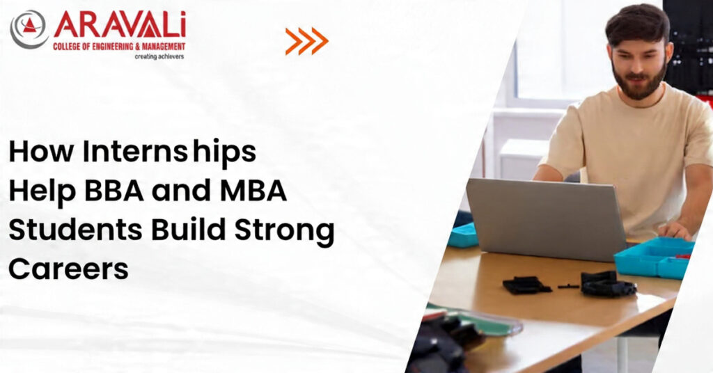 Internships have become an essential part of building a strong career for both BBA and MBA students. They provide real-world exposure, practical skills, professional confidence, industry connections, and better placement opportunities. Students who actively pursue internships gain a deeper understanding of the business world and become more capable of handling future responsibilities. For students aiming to build meaningful and successful careers in management, choosing the right college also plays a major role in shaping their journey. Aravali College of Engineering & Management continues to support students through internship training, corporate exposure, and professional development, ensuring they are fully prepared for the competitive world ahead.