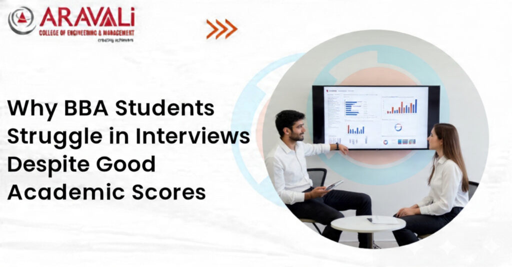 Academic excellence in studies is an indicator of discipline and conceptual knowledge, whereas interviews are used to evaluate the ability of a candidate to work in a real business setting. Students at the BBA level fail in the interview sessions not because they are not bright, but because academic excellence does not nurture skills in communicating, getting practical experience, gaining confidence, and having corporate awareness. The only way to address this gap is to pay a fair amount of attention to the theory, skills, and practical experience during the academic process. Learning institutions such as Aravali College of Engineering and Management have realized this challenge and focus on holistic growth in terms of industry exposure, skill development programs, and careerist training and development in order to ensure that students who have good academic backgrounds translate these backgrounds into meaningful work careers.